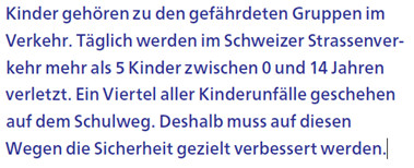 Warnung wegen Schulwegunfällen in der Schweiz vom Fussverkehr Schweiz, Zürich :
